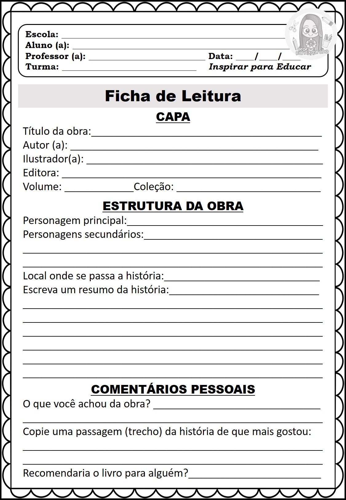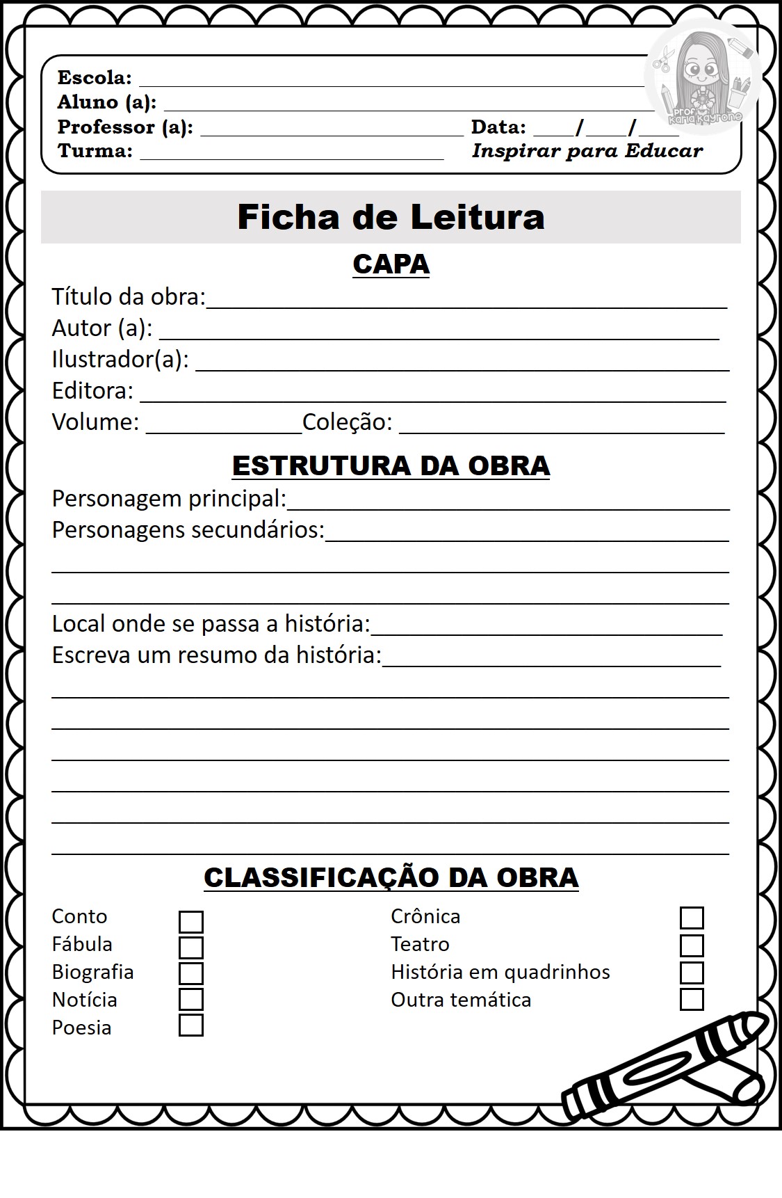 Passando para deixar quatro tipos de fichas literárias ótimas para trabalhar com sua turma.