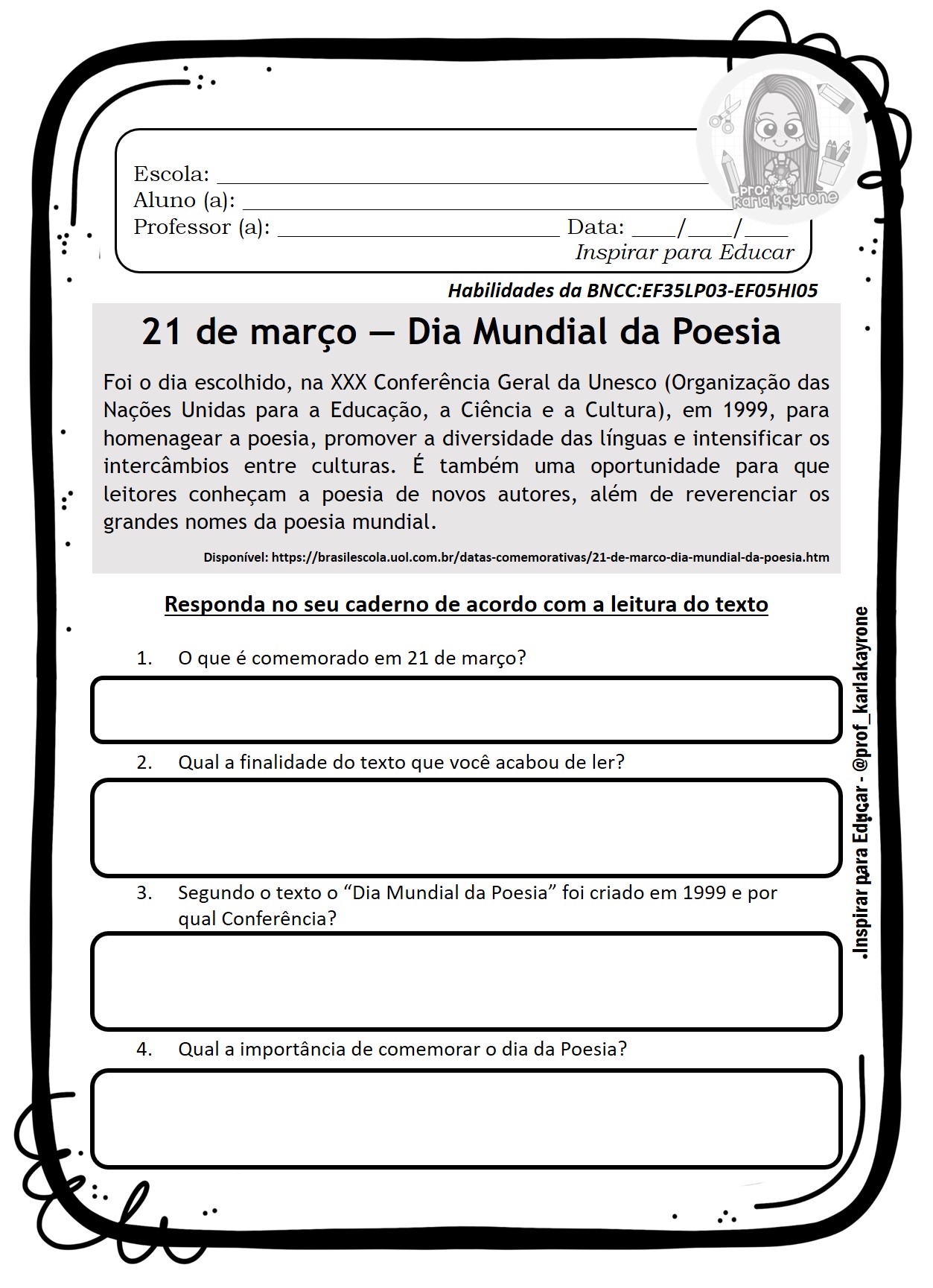 Para baixar em PDF é só clicar aqui: Dia da poesia