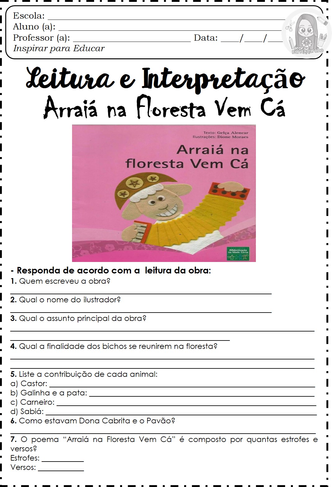 Já que estamos no mês das festividades juninas, estou passando para deixar uma atividade de leitura e interpretação da obra “Arraiá na floresta vem cá” da Coleção Paic, Prosa e Poesia. Fundamental I.