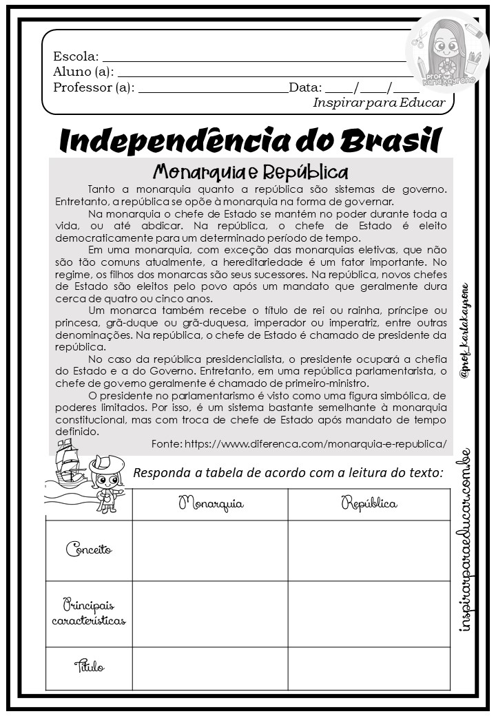Hoje trago sugestões de atividades para o Dia da Independência.