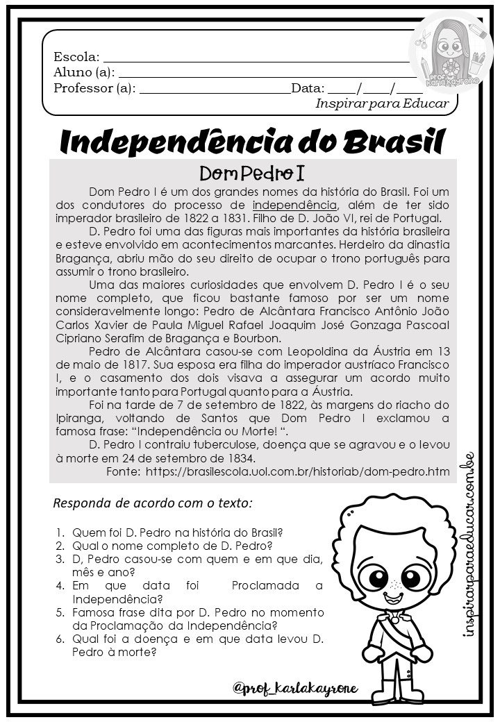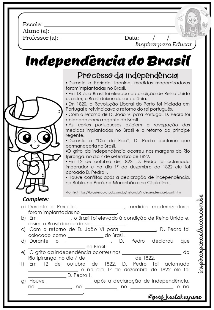 A parti desse momento histórico todos os anos na data de 7 de setembro, lembramos e comemoramos a Independência do Brasil.