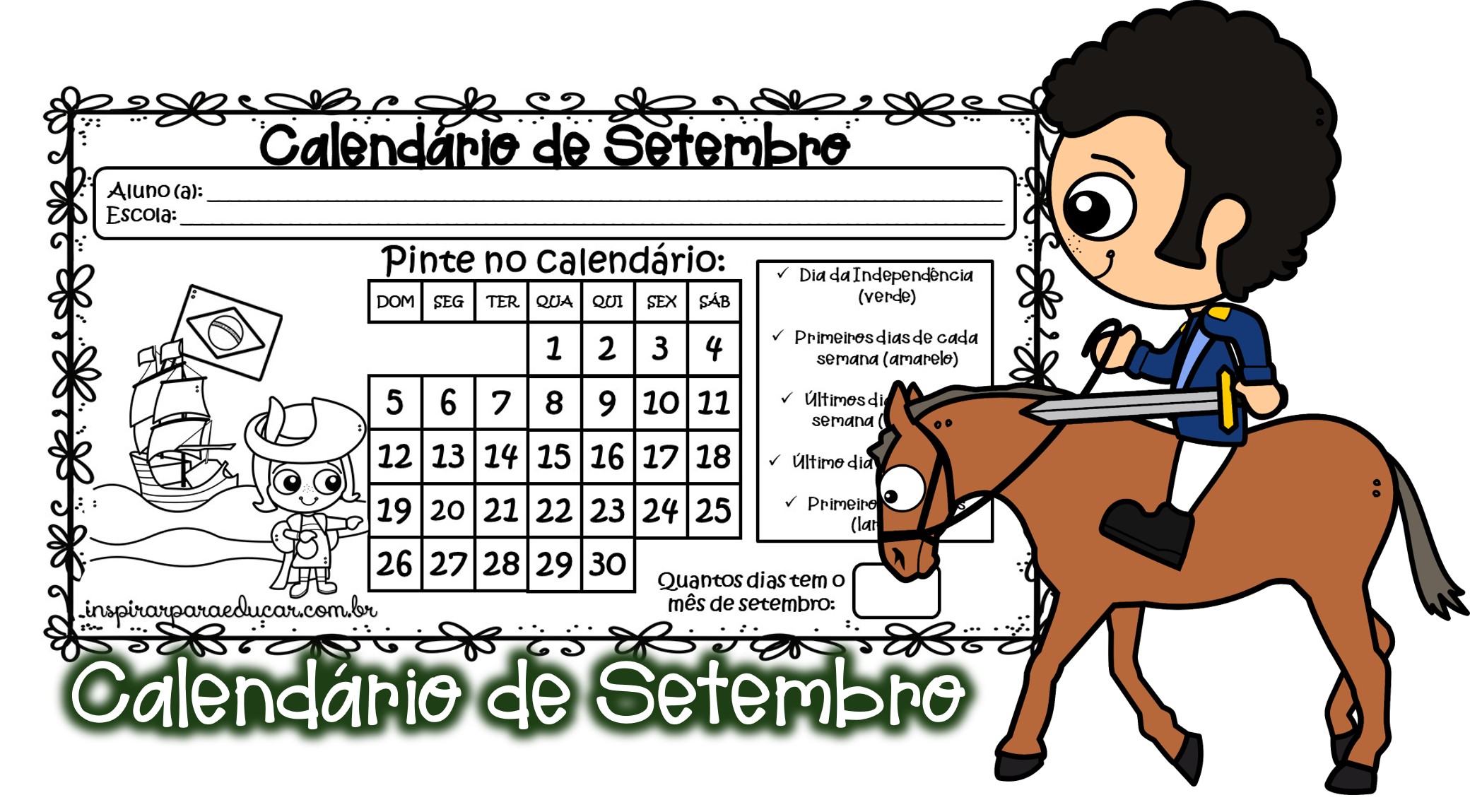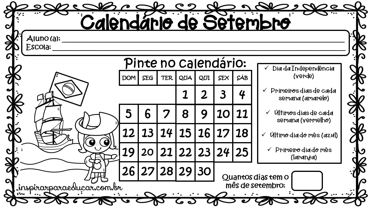 Material em PDF aqui: Calendário Setembro