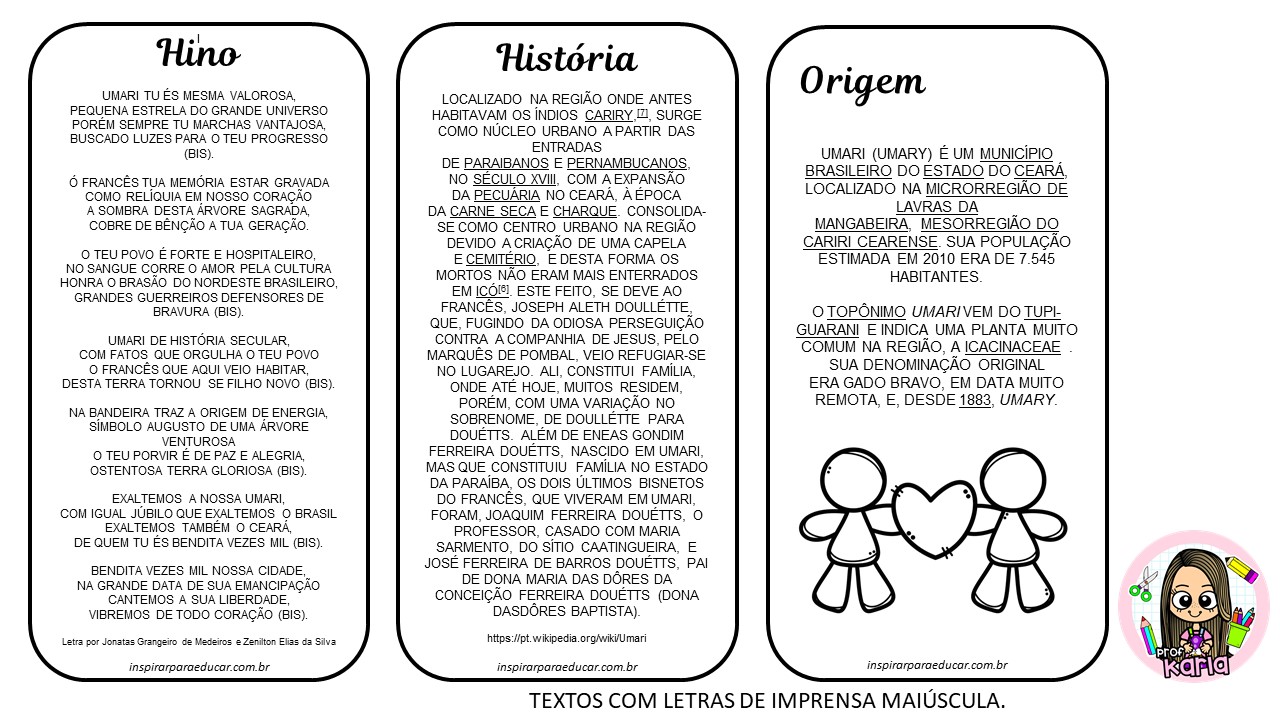 Esse material foi pensado com bastante carinho para ser trabalhado na semana de aniversário de nossa cidade.