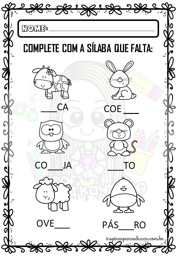 As atividades para alfabetização, podem ser utilizadas por você, em sala de aula, como exercícios de fixação, ou podem enviadas para tarefa de casa. No entanto, elas ainda podem ser usadas pelos pais, com o intuito de reforçar o aprendizado de seu filho.