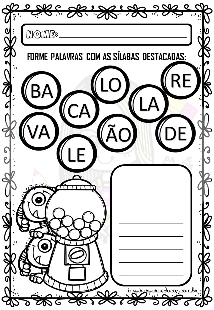 Hoje trouxe algumas atividades para as profas e pais que queiram trabalhar com as sílabas. Então, as atividades para alfabetizar são sobre sílabas. O objetivo das atividades é reconhecer que as palavras são formadas por unidades menores, as sílabas. Esse é um princípio básico para alfabetização, portanto também é uma ótima atividade para as turmas de 1º e 2º ano.
