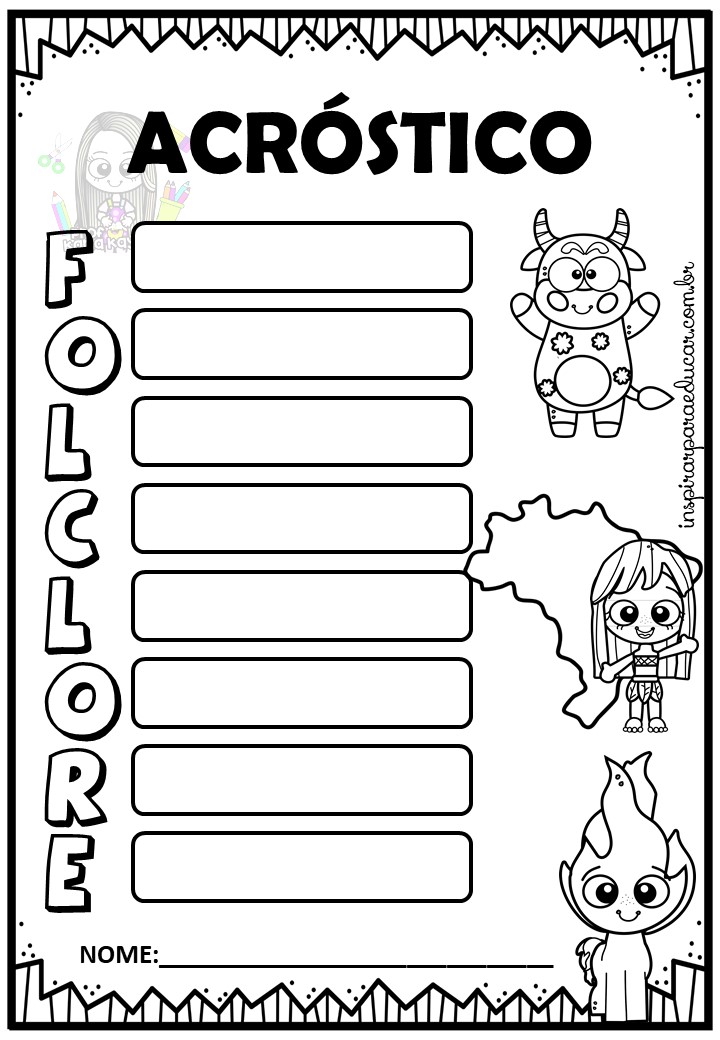 Está se aproximando o mês que mais amo, pois é o mês do “Folclore”. Sabe aquela atividade simples , mas que as crianças adoram e costuma auxiliar muito no processo de alfabetização? Então esse é o lugar para você pesquisar!
