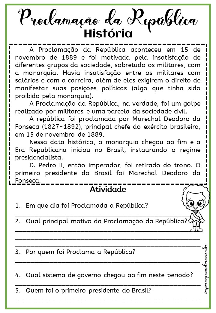 Hoje é dia de comemorar a Proclamação da República e ainda dá tempo trabalhar com a turminha do 3º ao 5º anos (fundamental I) sobre essa temática tão importante para nós brasileiros.