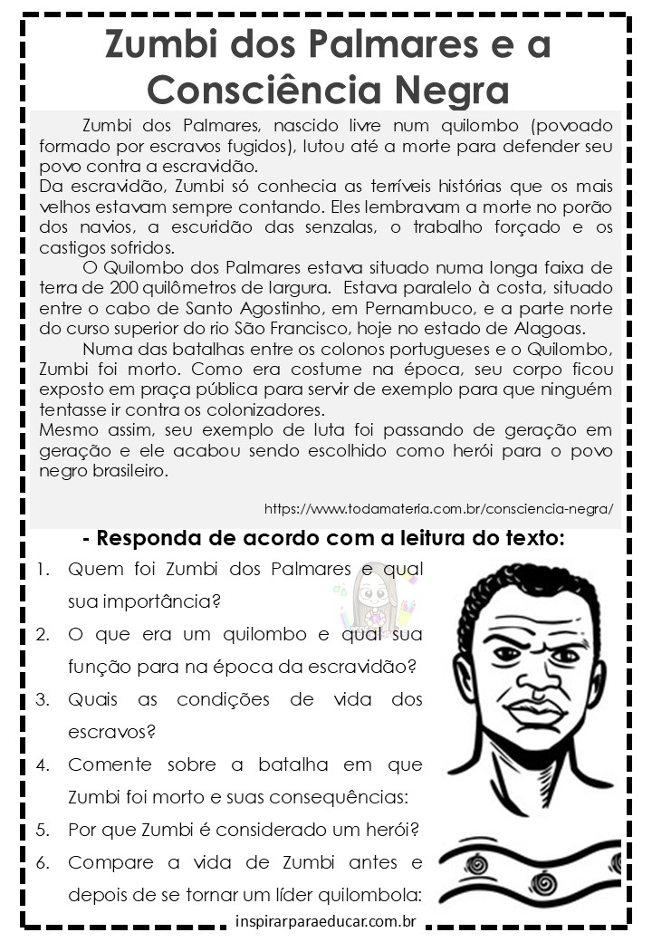 Veja o material e baixe aqui: Atividade sobre a Consciência Negra