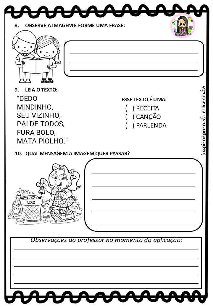 Segue material em PDF: Avaliação diagnóstica 1º e 2º anos